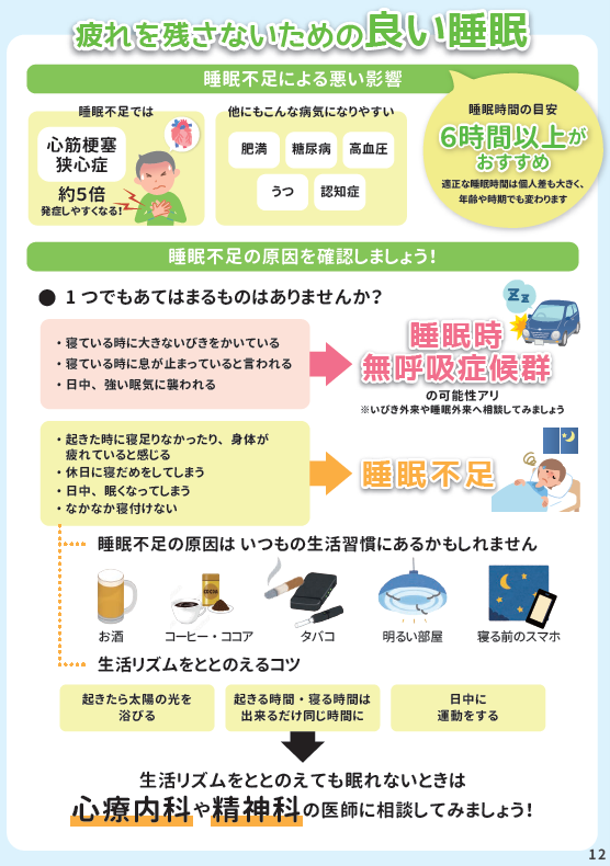 図3 睡眠に関する情報提供資料「健康サポートBOOKver9」より(特定保健指導や健康イベントにて配布)