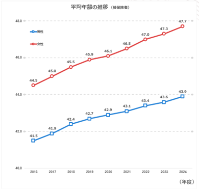 D健保は、スーパーマーケットや百貨店等の小売業を中心とした中小規模事業所264社、約18万人(2025年9月時点)が加入しています。加入者の約6割を女性が占め、更年期層が多くなっています(図1)。また、社会保険の適用拡大により、パートタイム雇用者の加入が進み、事業所単位では約5年で半数の者が入れ替わるなど、非常に流動的な構成です。また、加入事業所規模は従業員100人未満の事業所が半数を占め、専任の産業医や保健師の在籍する事業所も限られています。こうした健康支援の体制が十分とは言えない背景から、D健保では、事業所とのコラボヘルスにより、疾病予防や重症化予防、健康経営支援の保健事業を展開しています。