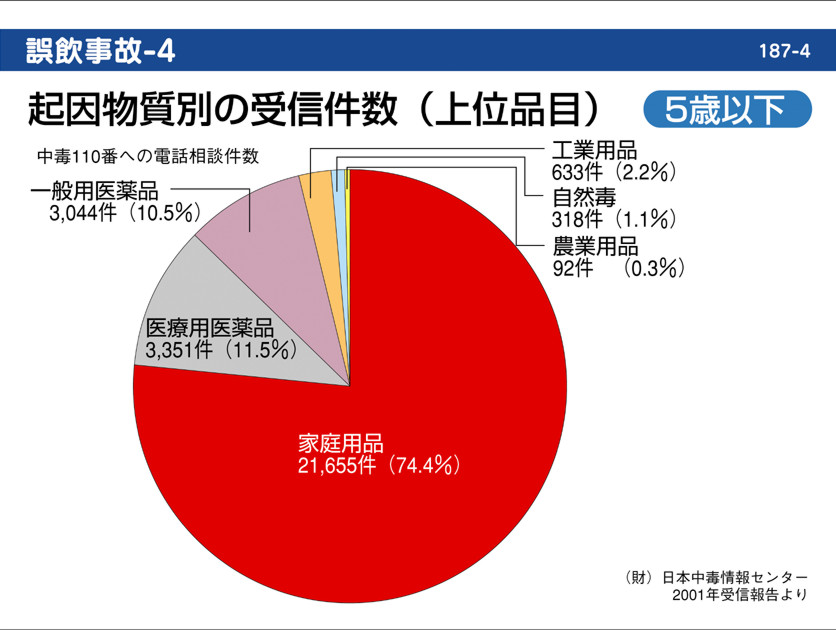 日本中毒情報センターの電話受信内容を見ると76%以上が「家庭用品」の誤飲。赤ちゃんの周りは危険がいっぱい。